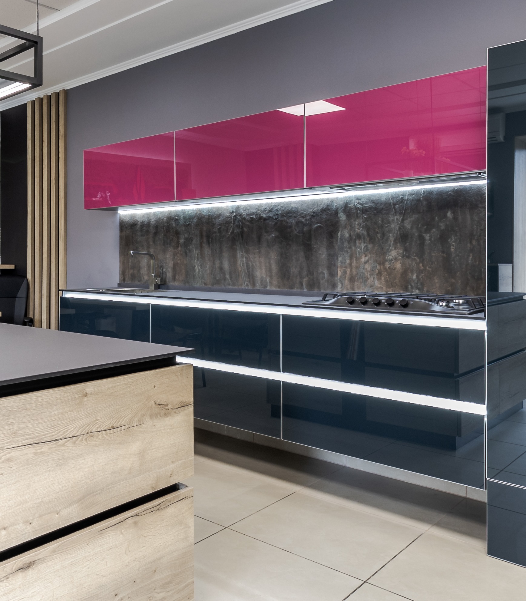 Один из самых популярных видов фасадов мебели – это фасады с накаткой HPL пластика. Множество декоров пластиков позволяет создать кухню либо корпусную мебель по достаточно демократичной стоимости, которая будет конкурировать с дорогой авторской мебелью (в сравнении с фасадами из натурального дерева, крашеными фасадами, эмалевыми фасадами и т.д.). А огромнейший вид кромок позволит поэкспериментировать с цветом, создавать дверцы с торцами, цвет которых будет отличаться от основного цвета полотна фасада, и добавит элемент уникальности в общую концепцию мебели (ссылка на раздел кромок). Поверхность HPL пластика может иметь глянцевую или матовую поверхность и быть выполнена в разнообразных расцветках — от ярких однотонных декоров до фантазийных декоров под «золото» или «серебро», имитация экзотических пород дерева и камня.