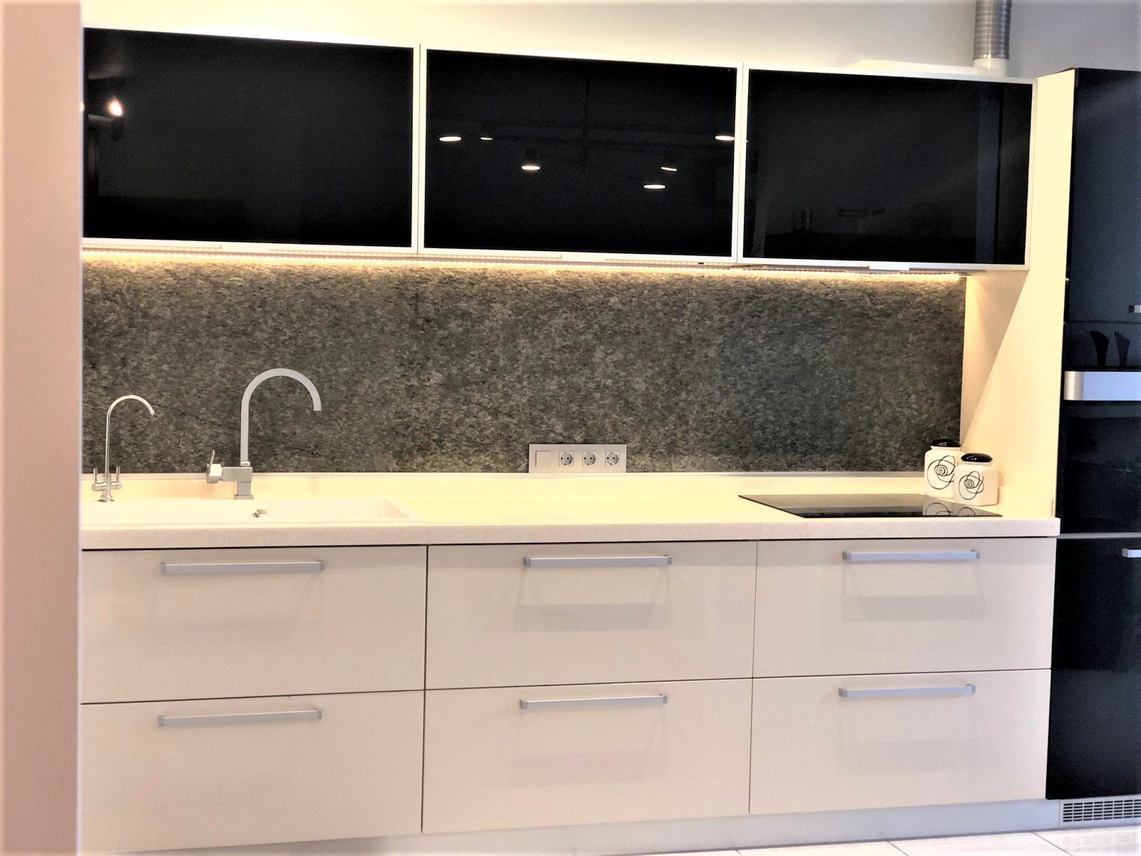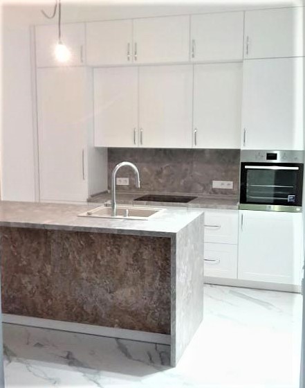 Один из самых популярных видов фасадов мебели – это фасады с накаткой HPL пластика. Множество декоров пластиков позволяет создать кухню либо корпусную мебель по достаточно демократичной стоимости, которая будет конкурировать с дорогой авторской мебелью (в сравнении с фасадами из натурального дерева, крашеными фасадами, эмалевыми фасадами и т.д.). А огромнейший вид кромок позволит поэкспериментировать с цветом, создавать дверцы с торцами, цвет которых будет отличаться от основного цвета полотна фасада, и добавит элемент уникальности в общую концепцию мебели (ссылка на раздел кромок). Поверхность HPL пластика может иметь глянцевую или матовую поверхность и быть выполнена в разнообразных расцветках — от ярких однотонных декоров до фантазийных декоров под «золото» или «серебро», имитация экзотических пород дерева и камня.